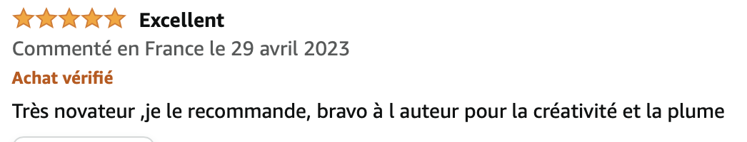 Le tout premier commentaire sur Amazon, Merci pour cet encouragement !
