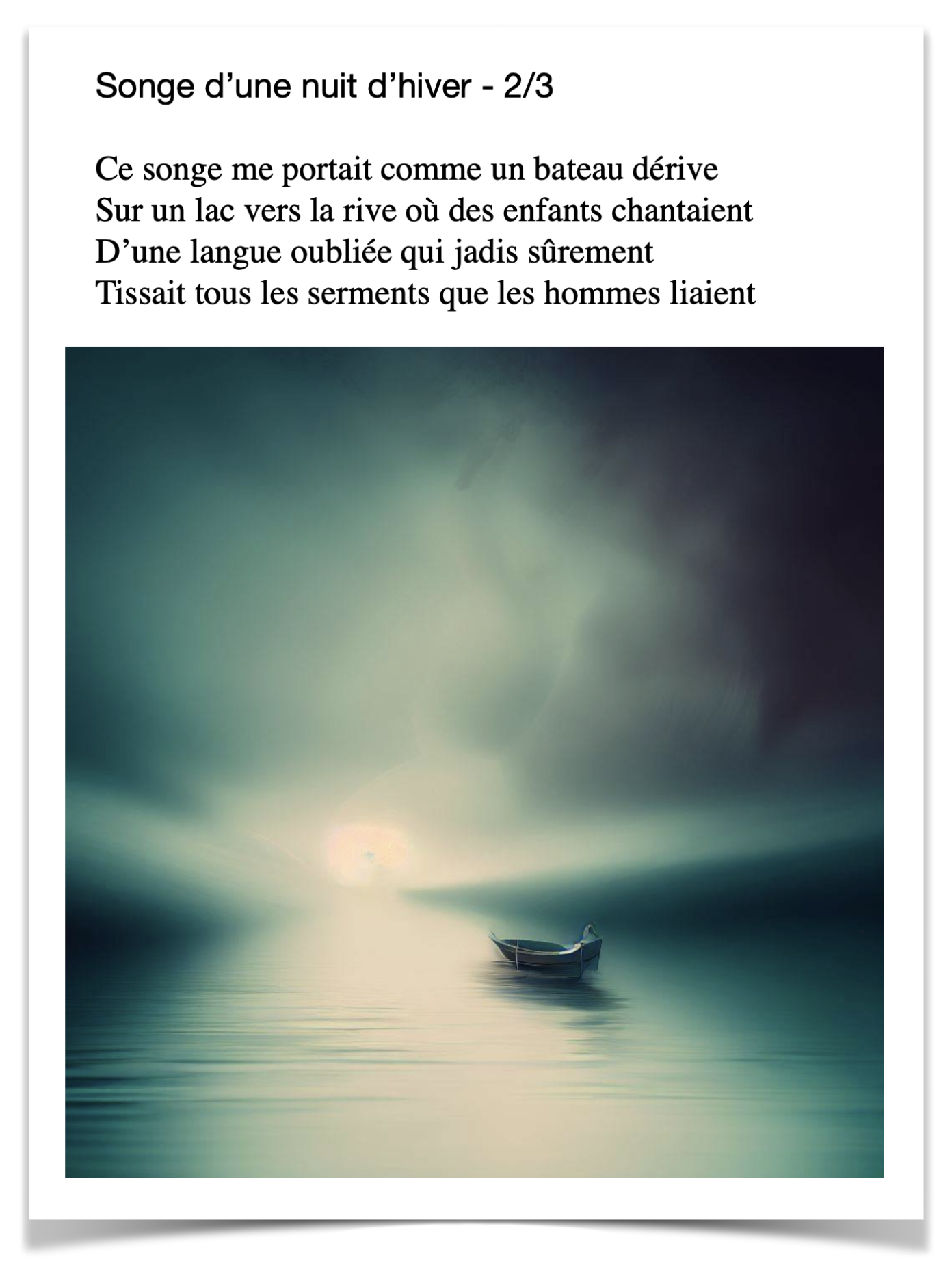 « Précédent Songe d'une nuit d'hiver 1/3 - poésie Songe d'une nuit d'hiver 3/3 - Poésie Suivant »