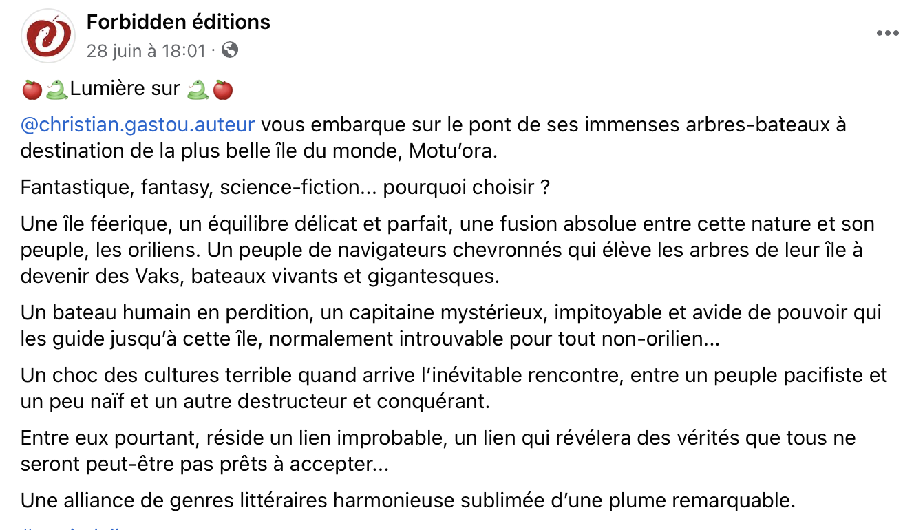 Vous pouvez retrouver mon roman sur le site de l'éditeur Forbidden Editions et sur de nombreuses plateformes comme Amazon, mais également ICI sur ce site...